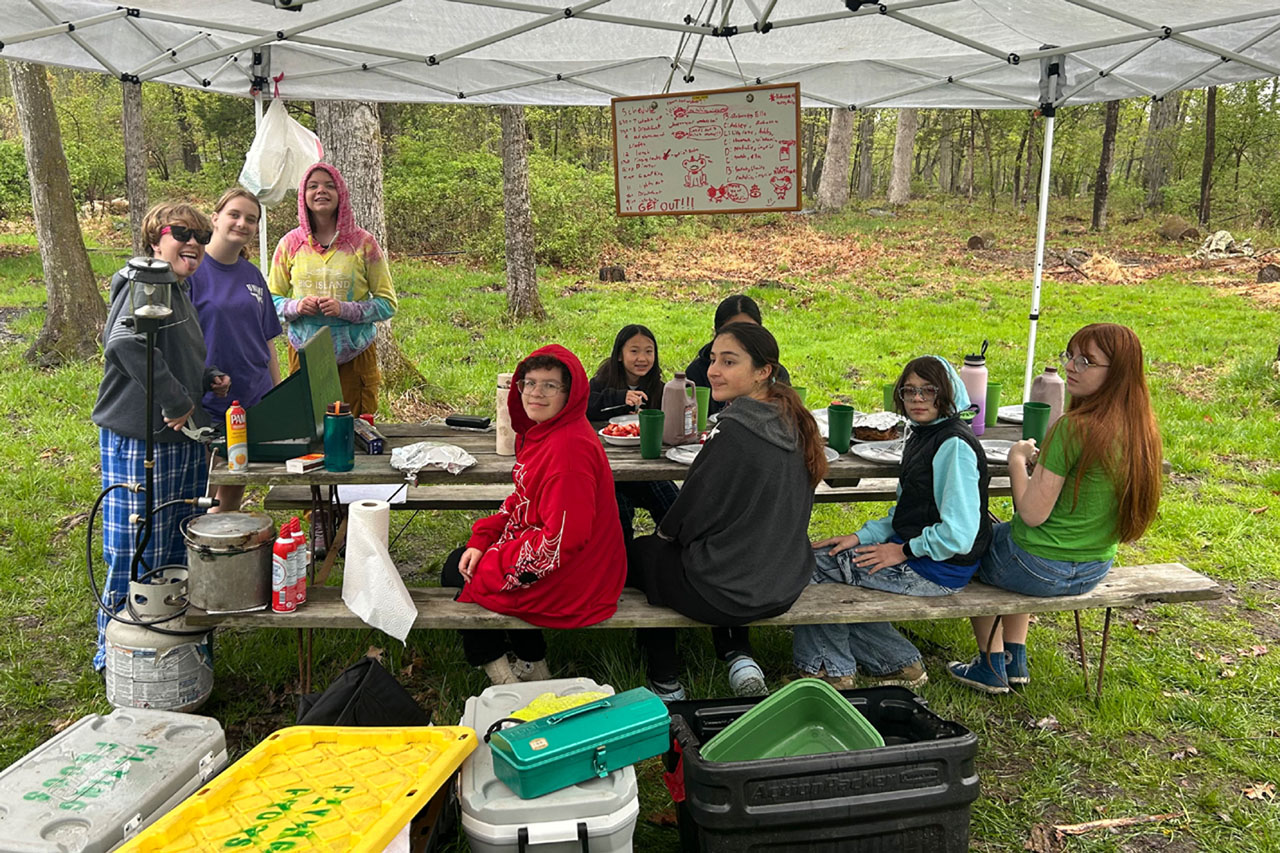 The Flying Frogs at breakfast. You can tell it was cold and dreary.