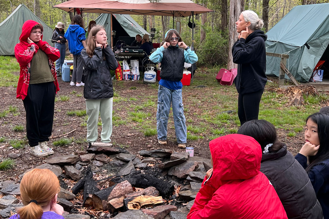 The morning program included a lot of advancement work. These Scouts are learning some first aid skills.