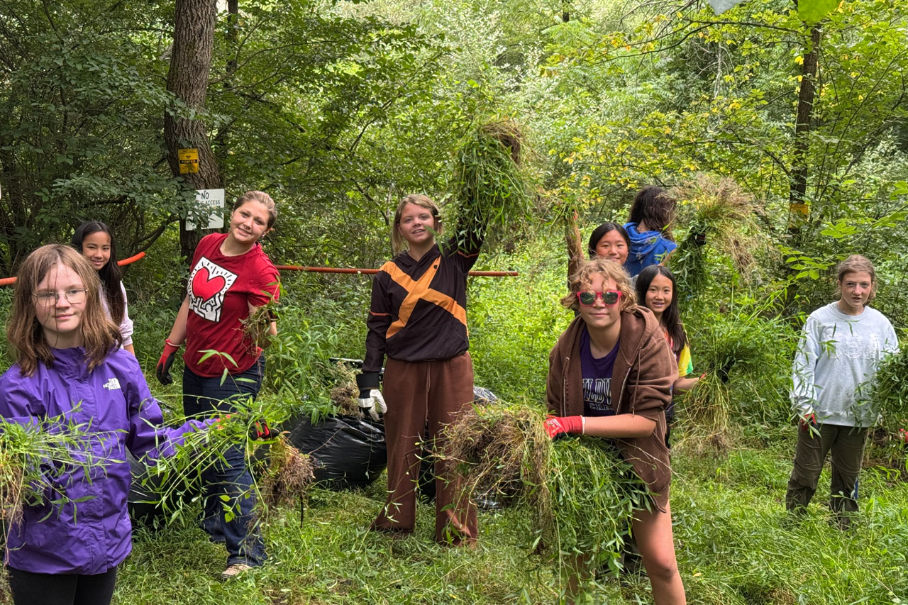 The project, held near the waterfall, was to remove Japanese stiltgrass, a widespread invader of woodlands.