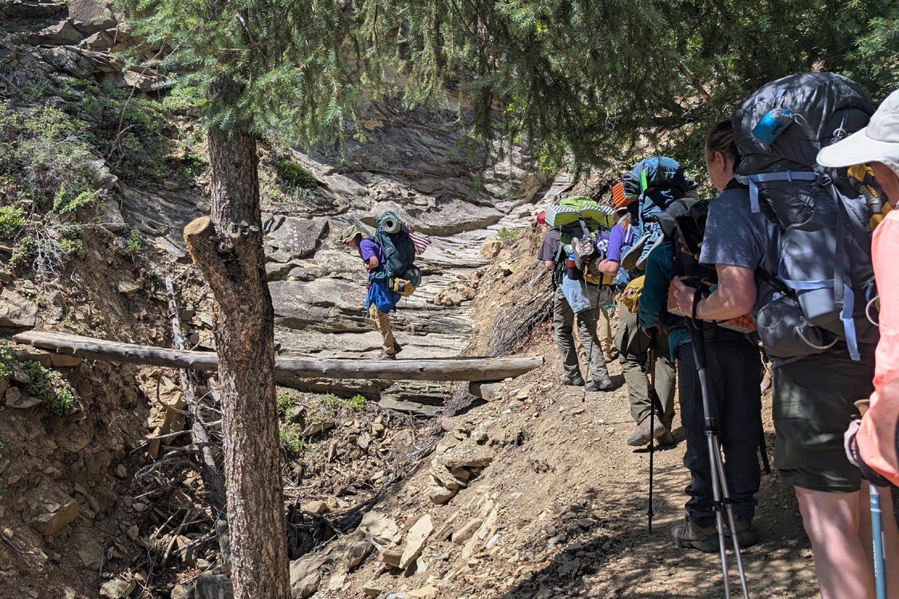 On day seven the crew went down through some interesting country to Ponil Camp at 7,200 feet. Ponil was the original Philmont Base Camp and is still one of the largest and most interesting camps.