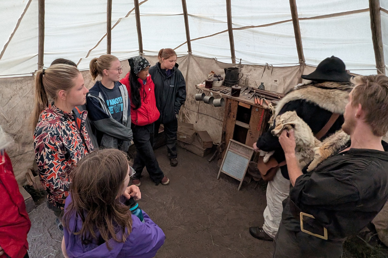 Day thirteen took our crew to the final trail camp of the trip -- Miranda. This camp has a mountain man theme, and the crew is gathered here in a fur trapper's teepee.