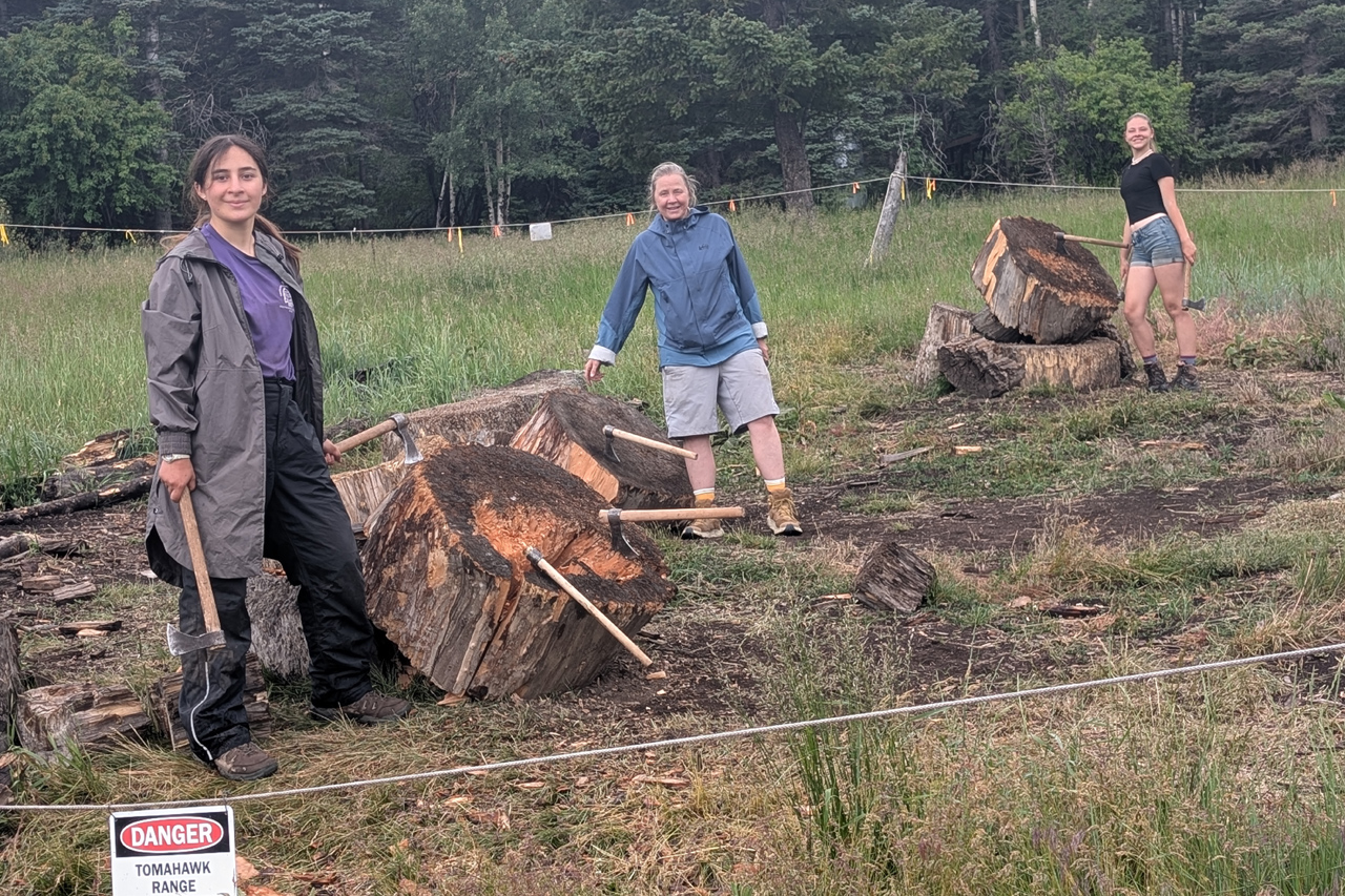 This photo makes it look easier than it is to get your tomahawk to stick in a log.