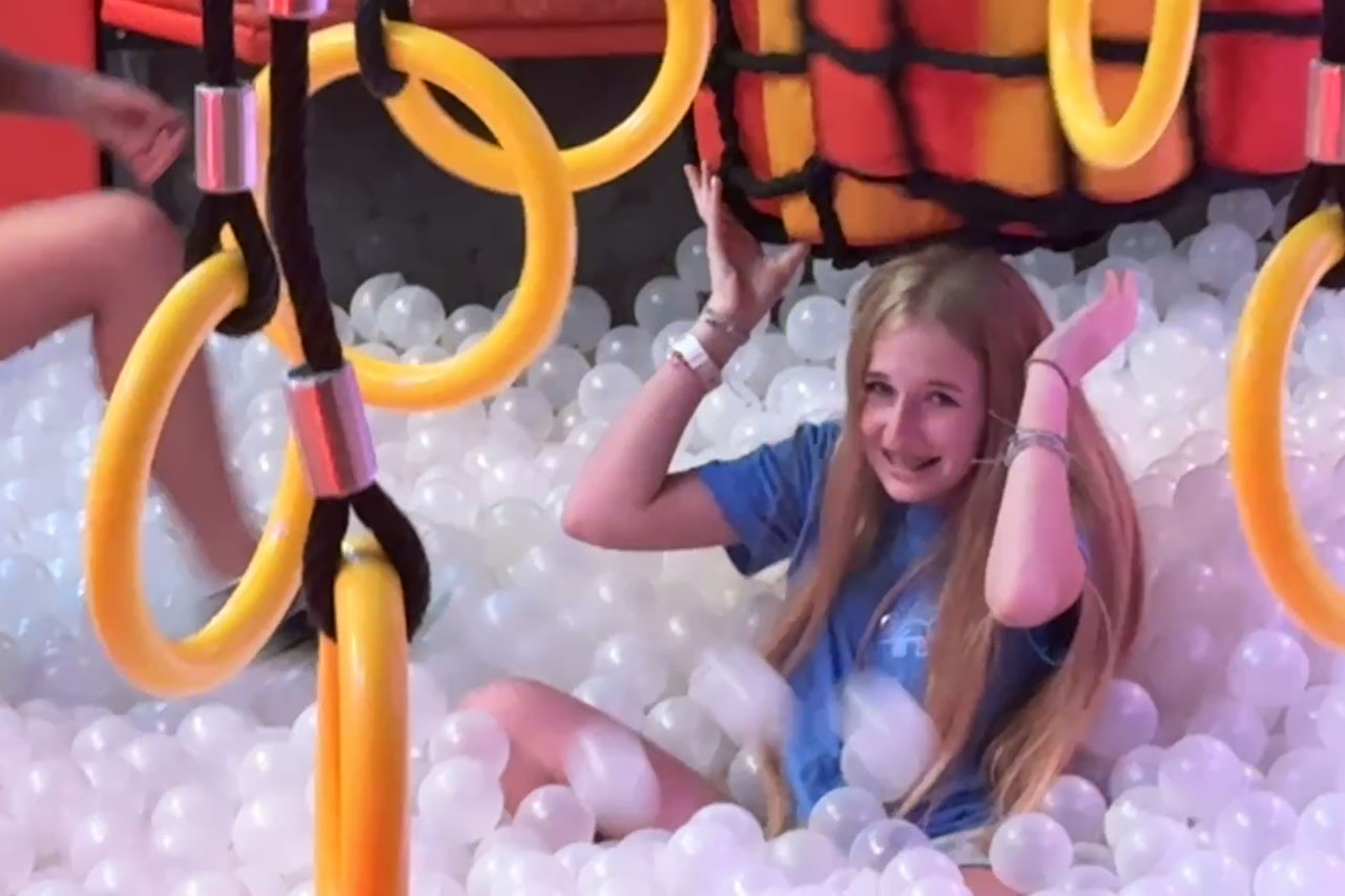 They call this attraction the warrior course. The idea is to NOT fall into these white balls.