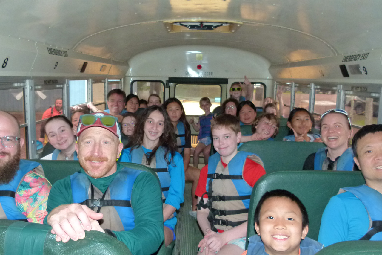 Then it was on the bus to go to the river.