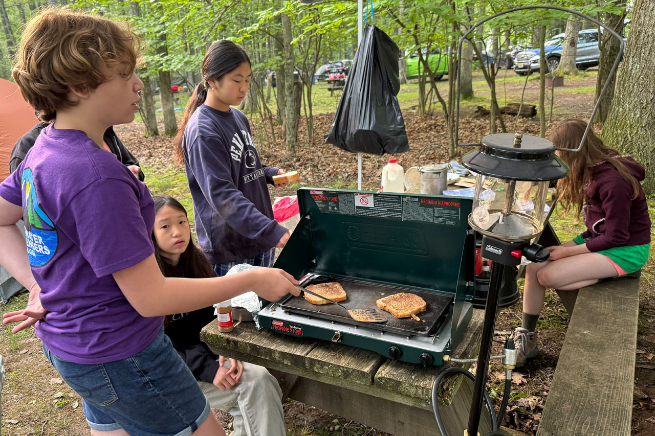Breakfast time on Sunday morning. The Flying Frogs prepared French toast.