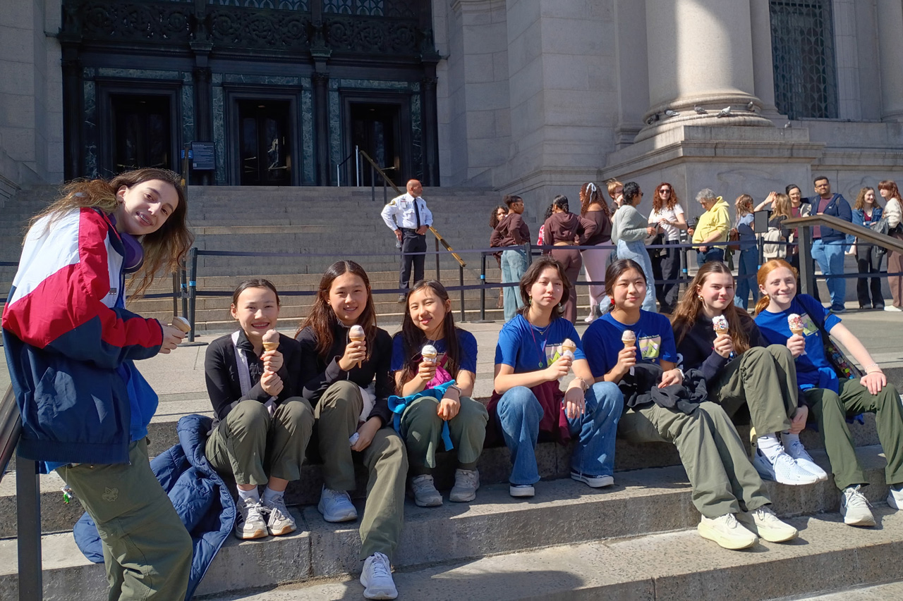 Before entering the museum, the Scouts had the chance to get a snack at one of the food trucks parked in front of it. These Scouts are enjoying some ice cream. By the way, the weather was great and ice cream was a perfect choice.