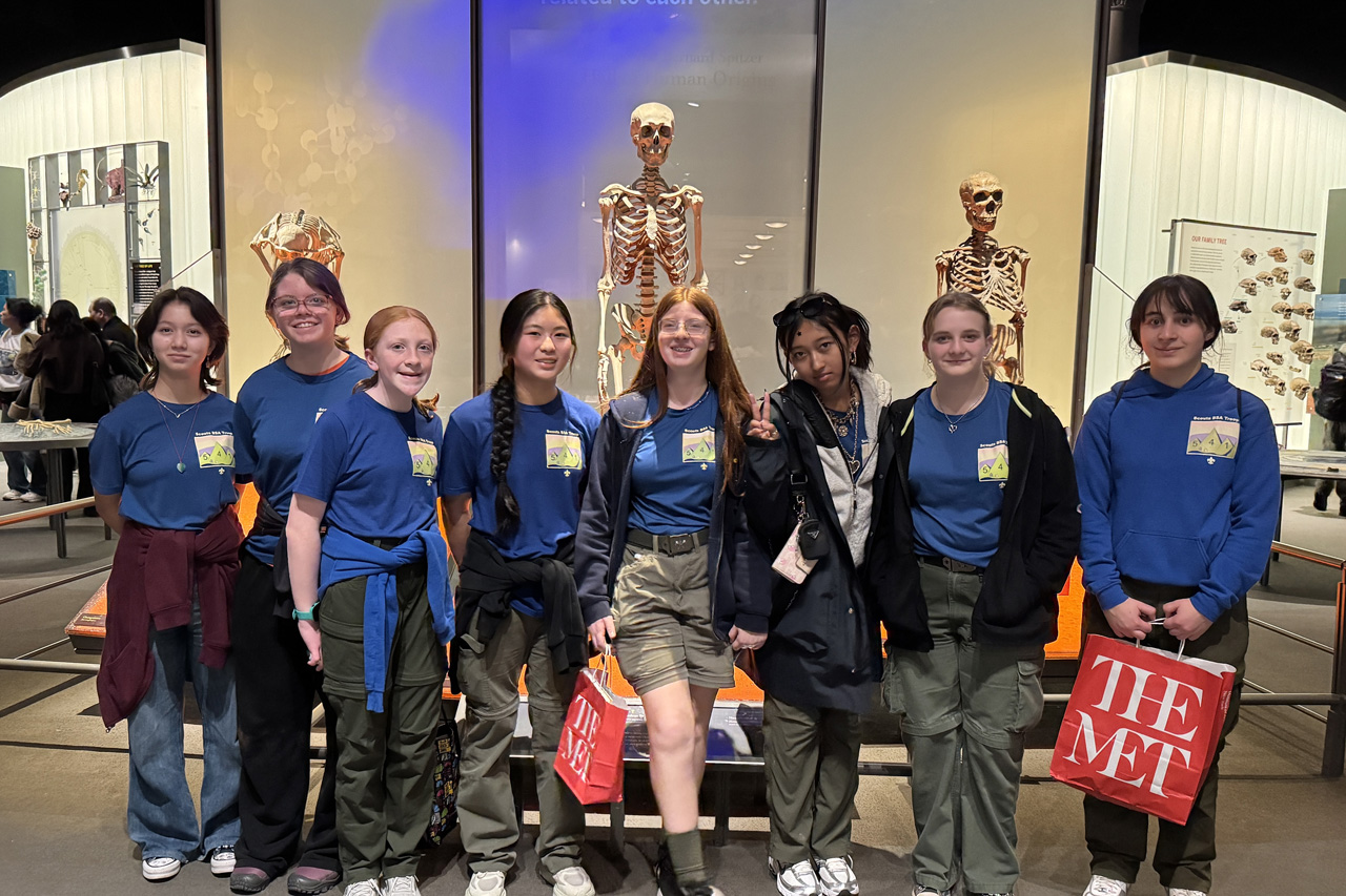 This is the human origins exhibit. We triedl, but we couldn't get the guys in the back to crack a smile for the photo.