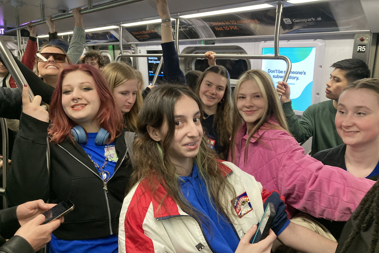 The Thunderbird Patrol on a packed subway car.