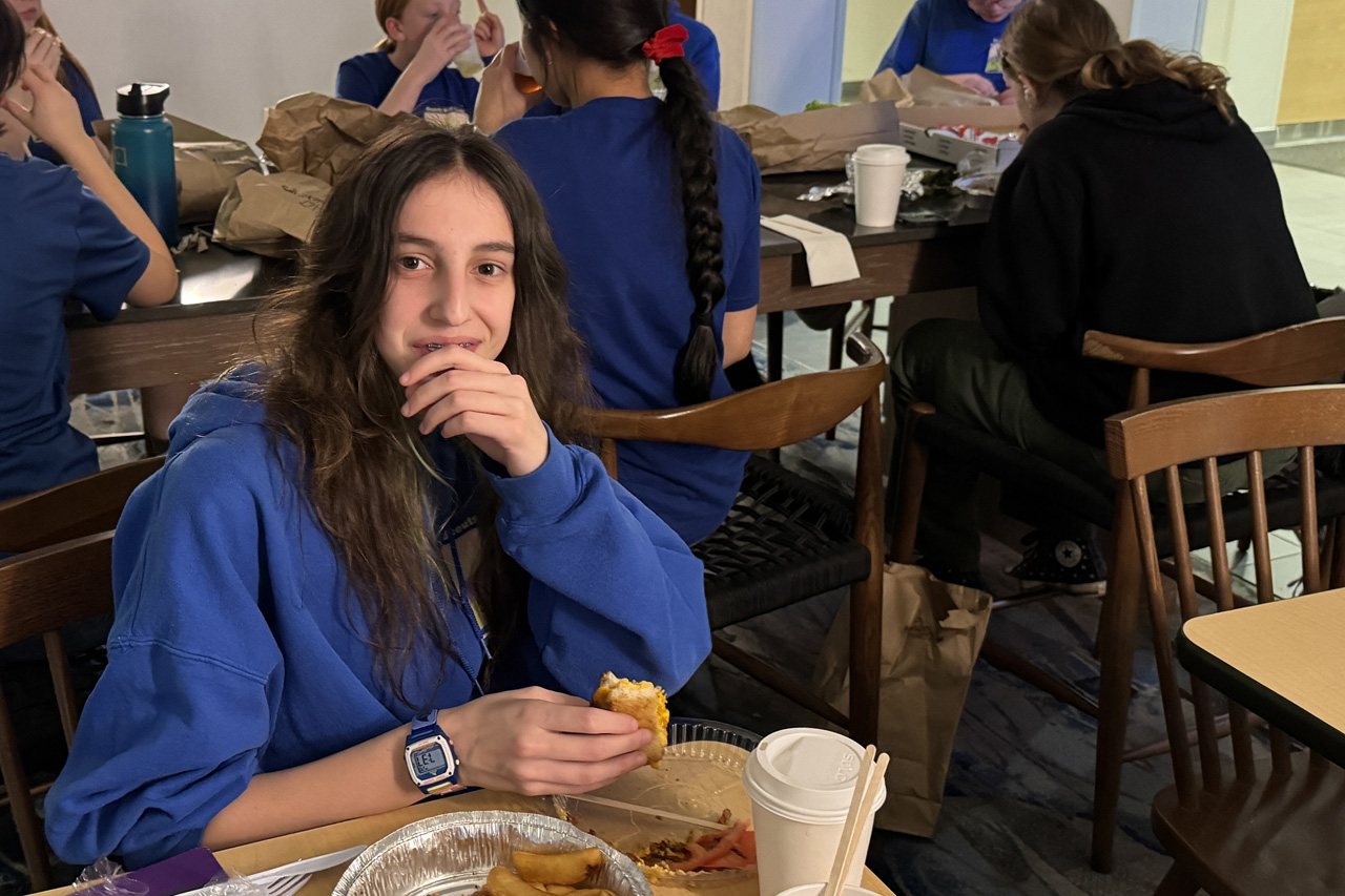 Everyone was hungry by the time we got to our hotel in New Jersey. Here's our SPL enjoying some take out we had ordered. Our leaders picked it up and brought it to the hotel to eat.