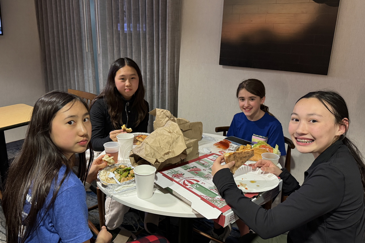 Some of the Star Dragons enjoying their dinner at the hotel.