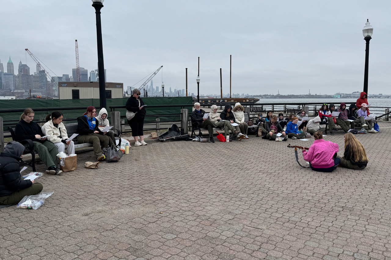 You can't see it in this photo, but the Scouts could see Ellis Island and the Statue of Liberty from where they were seated for our interfaith service on the topic of unity.