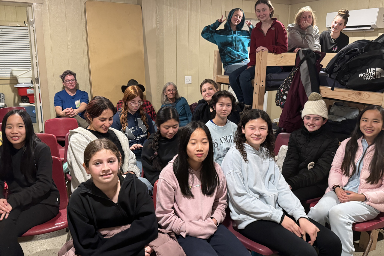 Some rain came through right after dinner, so we all gathered in the cabin for our campfire program of songs and skits.