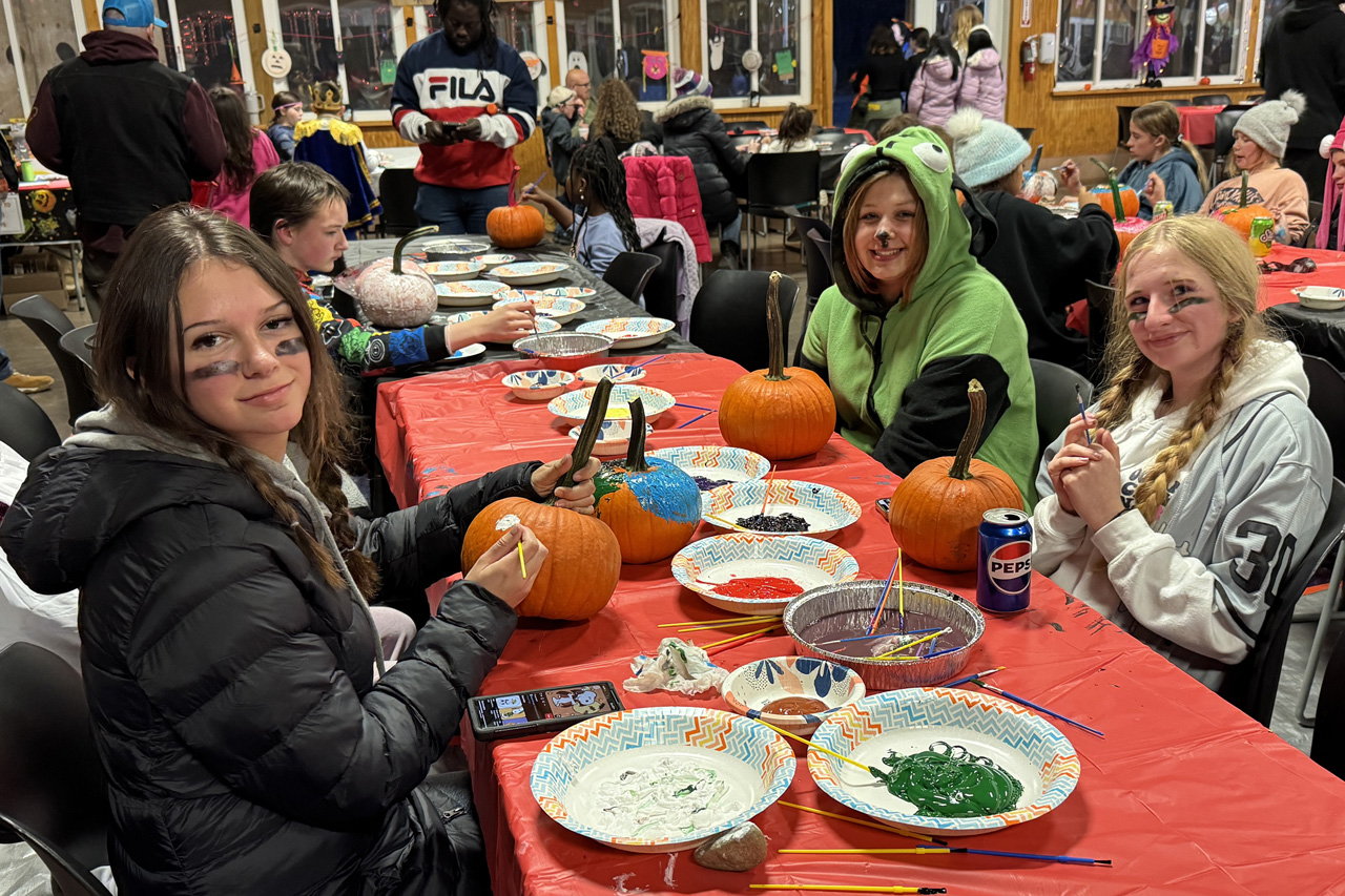 We started at the "Halloween Activity Center" where there were a number of games and activities. Pumpkin painting was very popular.