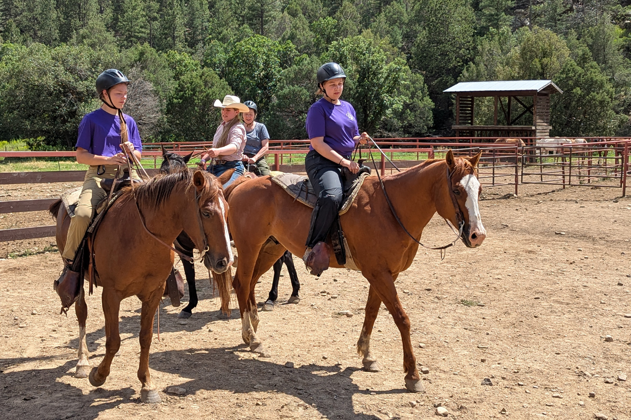 They would hike about ten miles each day going from camp to camp with activities at each camp. This was one of their favorites, Ponil Camp where they did horseback riding.
