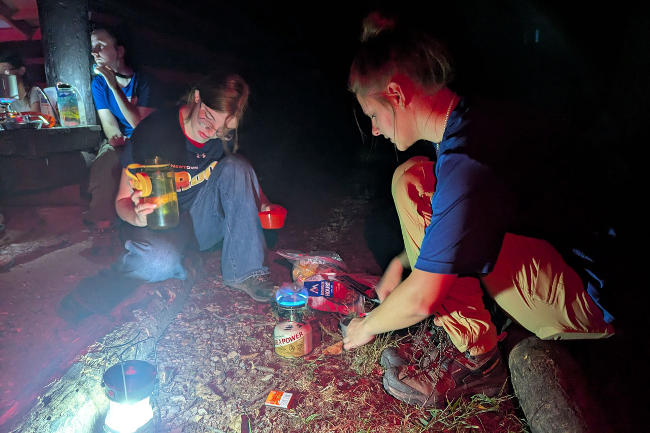 It was already dark by the time the group was able to prepare their freeze dried dinner. Then the exhausted crew retreated to tents for the night.