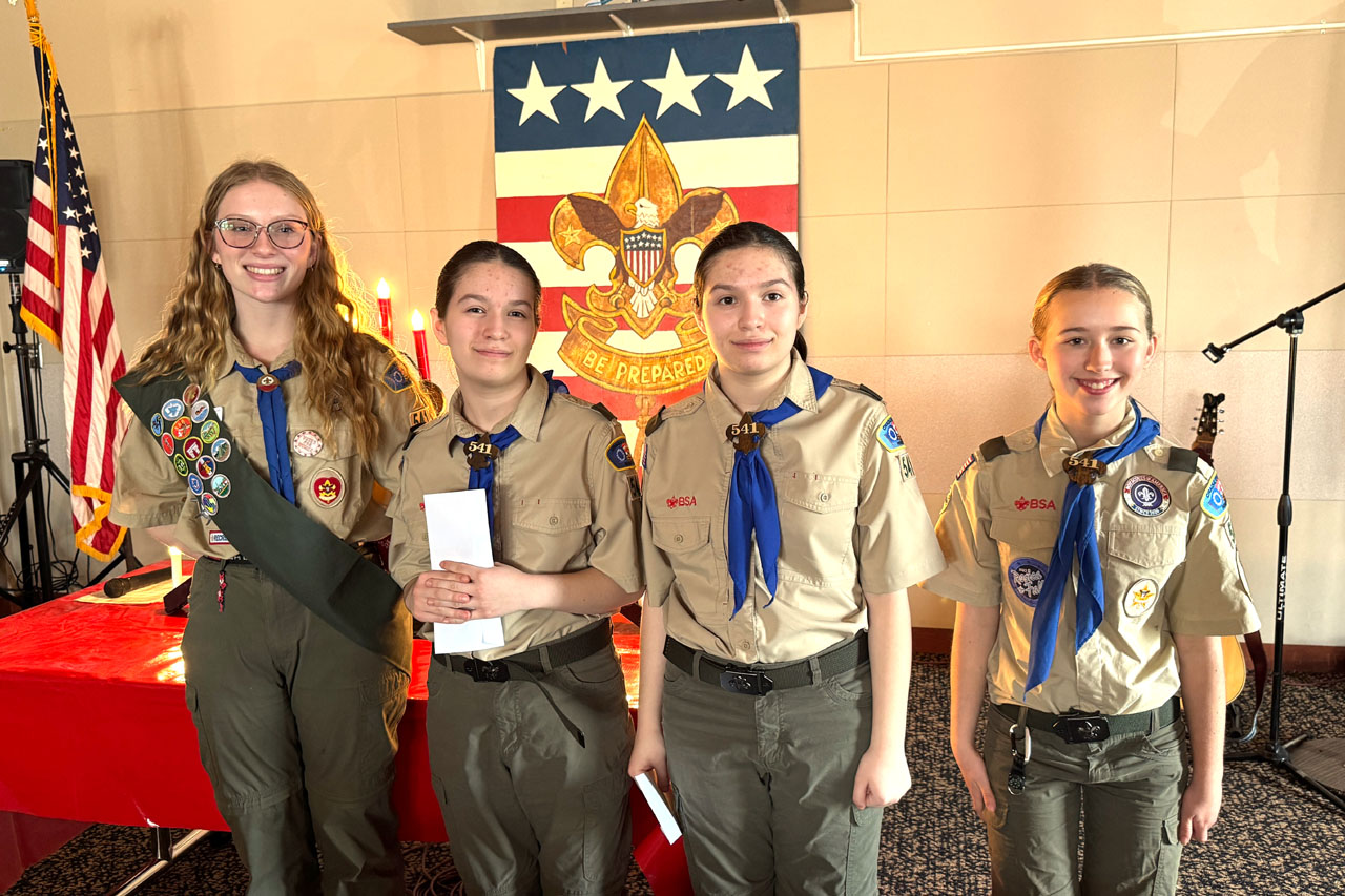 The SPL on the left and Scribe on the right awarded these two Scouts their Tenderfoot rank.