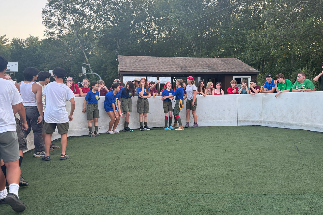 After dinner there were games on the parade field. Our Gaga team was overmatched when thrown into the pit with two teams of very large boys.